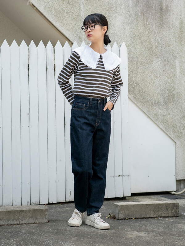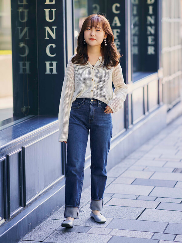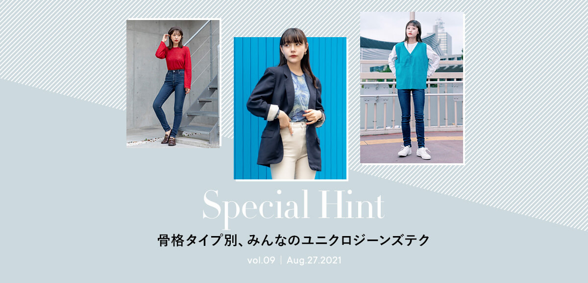 StyleHintのおしゃれ上手は、話題の骨格診断をジーンズ選びにも役立てている。骨格ナチュラルの人には、骨盤周りや太ももあたりがゆったりなユニクロのペグトップハイライズジーンズが好評。見せたくない骨っぽさを上手にカバーできるとか。タイトやワイドなジーンズでも、オーバーサイズやアシンメトリー、長めの丈などのトップスをもってくると、バランスよく着られるみたい。