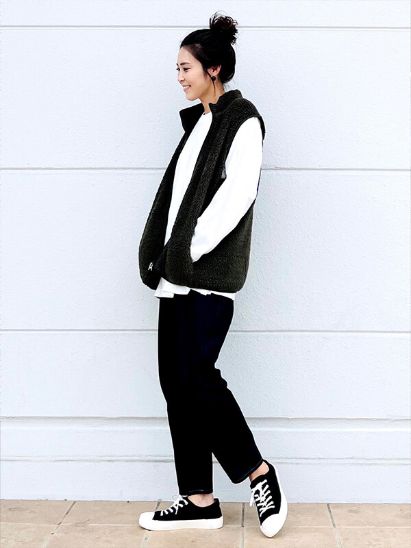 フォロワー数9,000超えのMiyukiさんは、メンズのXLサイズのトップスが主役のオーバーサイズコーデが得意。トップスの裾をインしたり、スリムパンツを合わせたり、ダボっとだらしなく見えないよう計算して着ているところに注目を。アクセサリーや髪型にも気を使っていて、メンズライクな着こなしながら女性らしさも漂うところも魅力的。