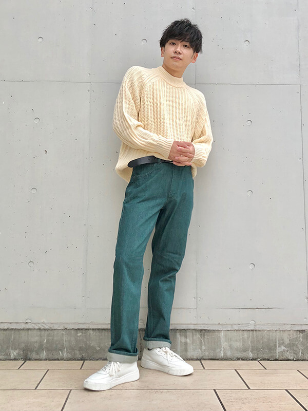 爽やかな着こなしが評判のYutoさんは、メンズもウィメンズも自在に着こなすおしゃれさん。最近はシルエットやデザインに大きな違いがないので、男性がウィメンズを選んでも違和感なく素敵に着こなせることを証明している。男性がウィメンズを着る場合は、彼のサイズ選びを参考に。