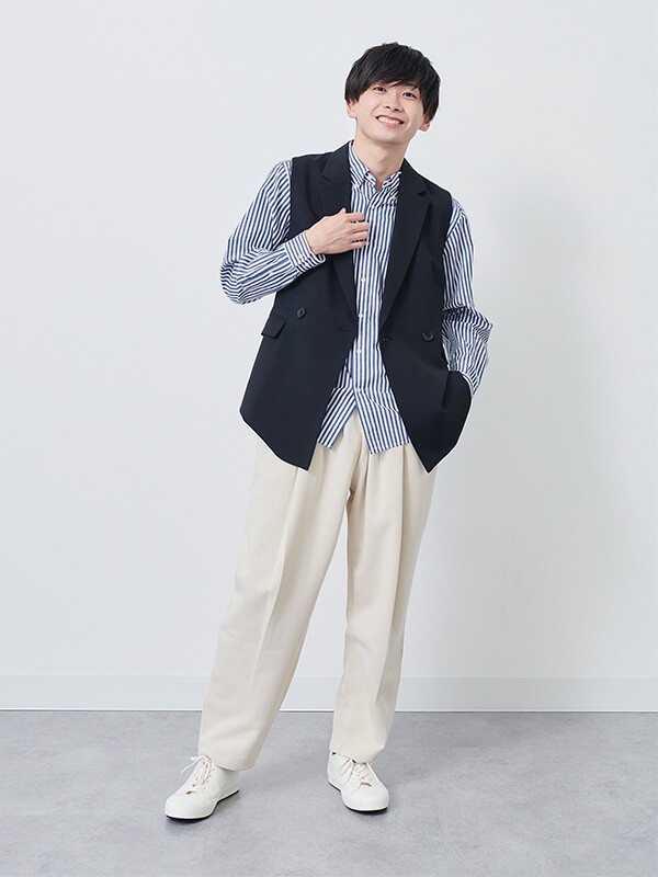 投稿にいいね☆が200以上つくこともある人気ユニクロスタッフShioriさん、Kubuさん、Yutoさんはレイヤードや小物合わせなど+αの味付けが得意。紹介する投稿では、ベーシックなユニクロのTシャツ、シャツ、パンツに、GUのジャンパースカートやベストなどトレンド色の強いアイテムをレイヤード。シューズやソックス、眼鏡などセンスが光る小物選びにも注目。
