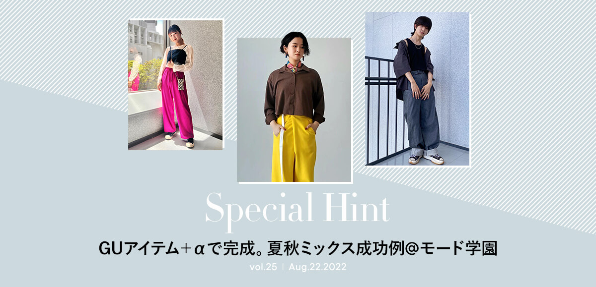 3校の学生が投稿してくれた夏秋ミックスコーデをクローズアップ。GUアイテム&私服ミックスで完成させた個性豊かな着こなしにおしゃれのヒントが詰まっています。