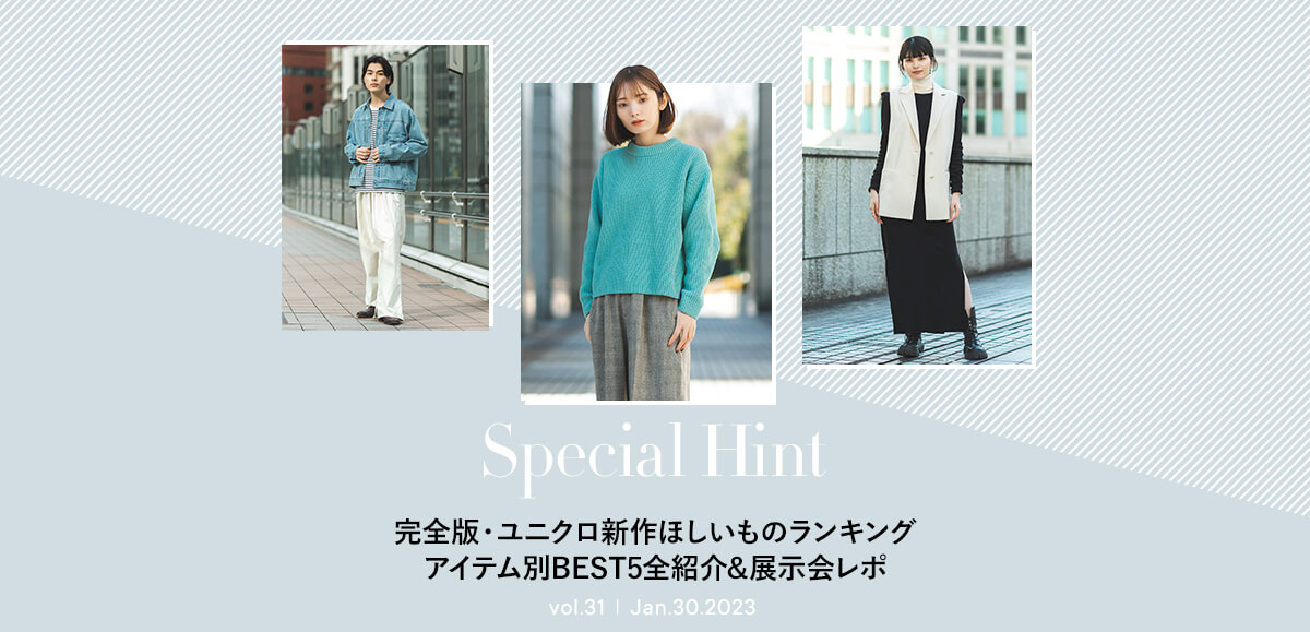 今回のSpecial Hintでは、ユニクロ 2023春夏コレクションの展示会でインフルエンサー、ファッション関係者に聞いた「みんなのほしいものランキング」の回答をアイテム部門別に集計。その7部門「WOMENSアウター」「MENSアウター」「WOMENSボトムス」「WOMENSワンピース・スカート」「WOMENSニット」「WOMENSスウェット・カットソー」「WOMENSシャツ」の1位から5位までのアイテムを一挙全紹介。各部門1位のアイテムを使った着こなし投稿にもクローズアップします。この春、何買って?どう着よう?のヒントに役立てて。