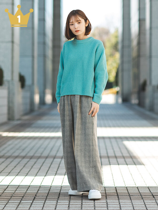 ボトムス部門1位はタックワイドパンツ。今季からウエストが2タックとなり、ベーシックなトップス合わせでもサマになる、ほどよいワイド感に。ワンピース・スカート部門1位はプリーツワンピース。同系色のスカートやカットソーをレイヤードさせて、カジュアルに楽しむのもテクニック。